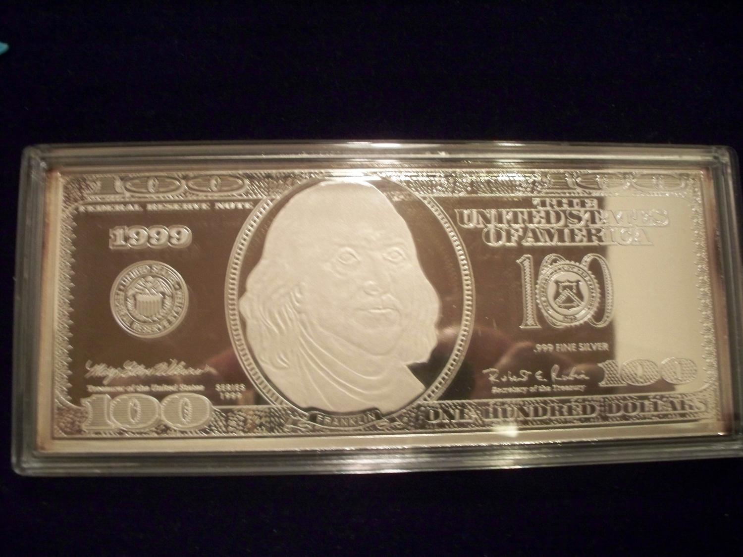 4 Oz .999 Pure Silver "$100 Bill"
