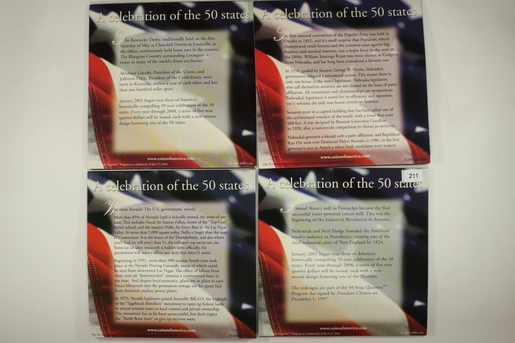 BRILLIANT UNC ON INFO CARDS 2001 KENTUCKY, 2006 NEBRASKA, 2006 NEVADA AND 2001 RHODE ISLAND