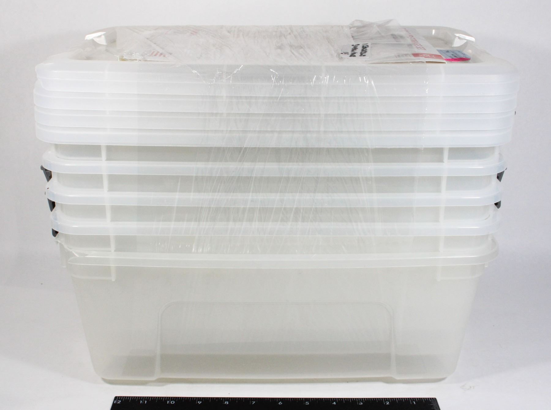 REPORTED TO HAVE ONE CRACKED LID AND SEVERAL ARE MISSING CLIPS. SOLD AS IS. 12.9 QUART (12.2L) CAPACITY EACH