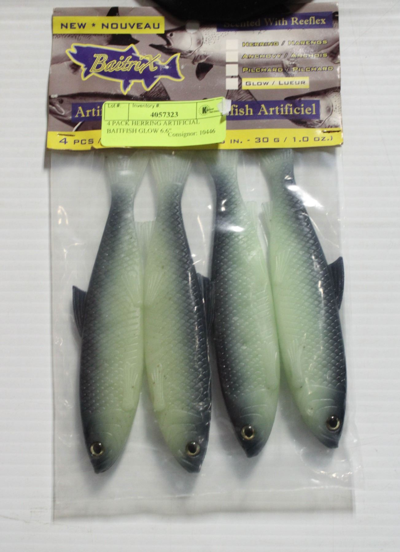 4 PACK HERRING ARTIFICIAL BAITFISH GLOW 6.6"