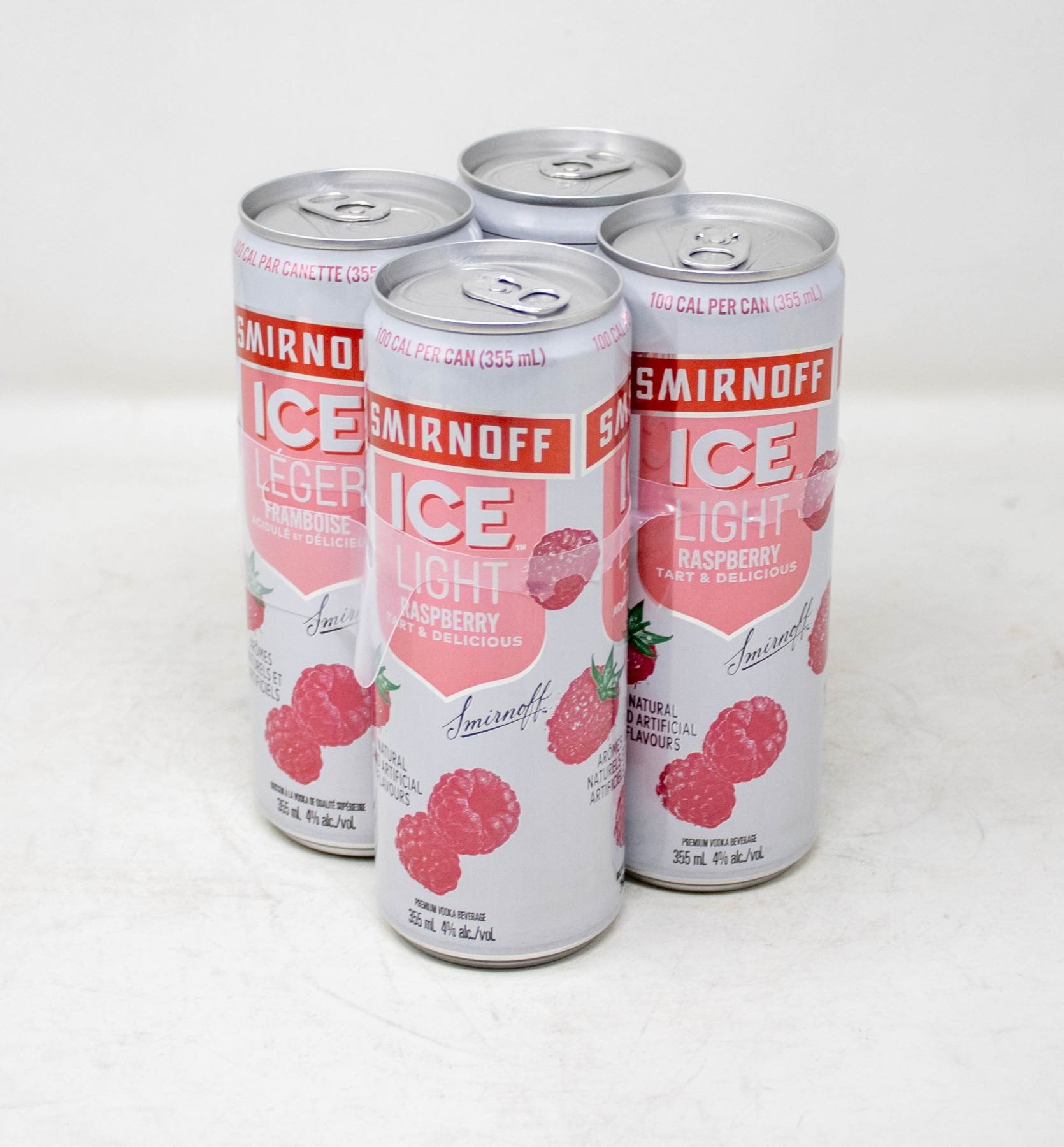 4 PACK OF SMIRNOFF ICE LIGHT RASPBERRY 355ML 4%