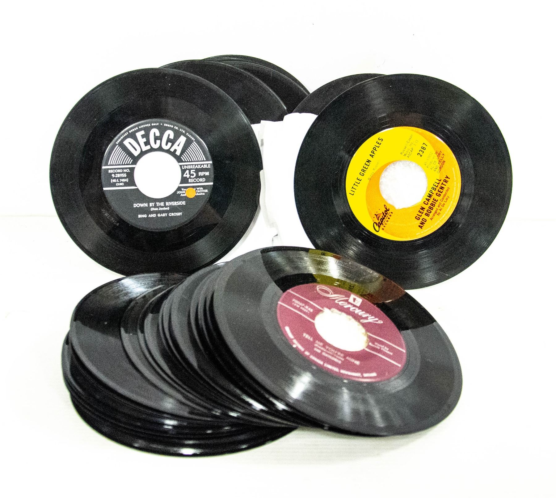 (4) PACKS OF 10 45'S COUNTRY AND ROCK AND ROLL