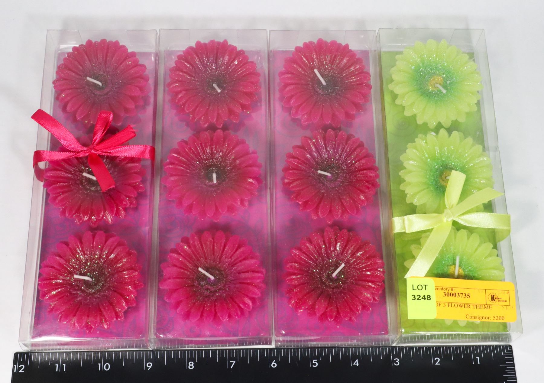 4 PACKS OF 3 FLOWER THEME CANDLES