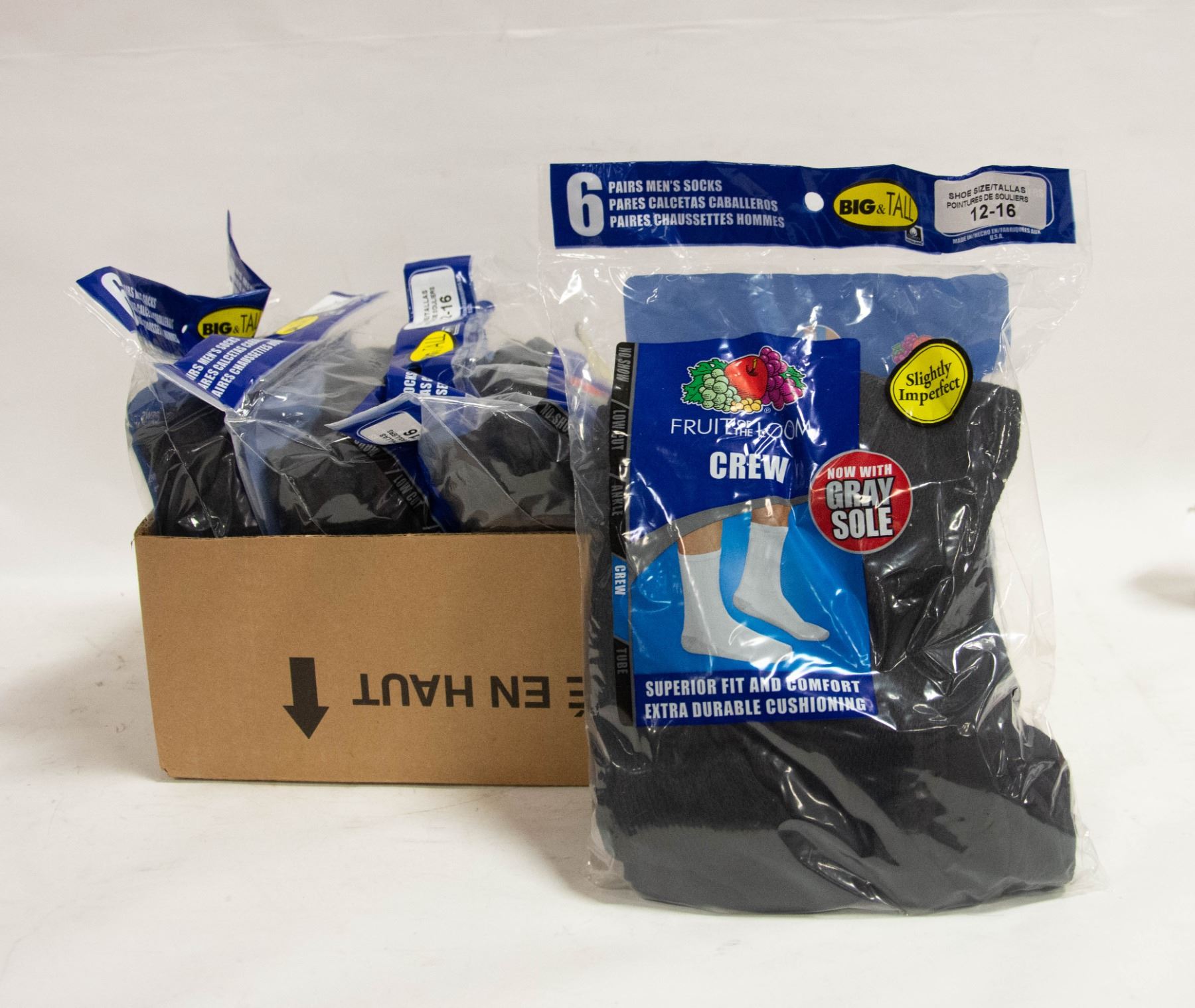 4 PACKS OF BLACK CREW SOCKS 12-16 SIZE 6-PACK