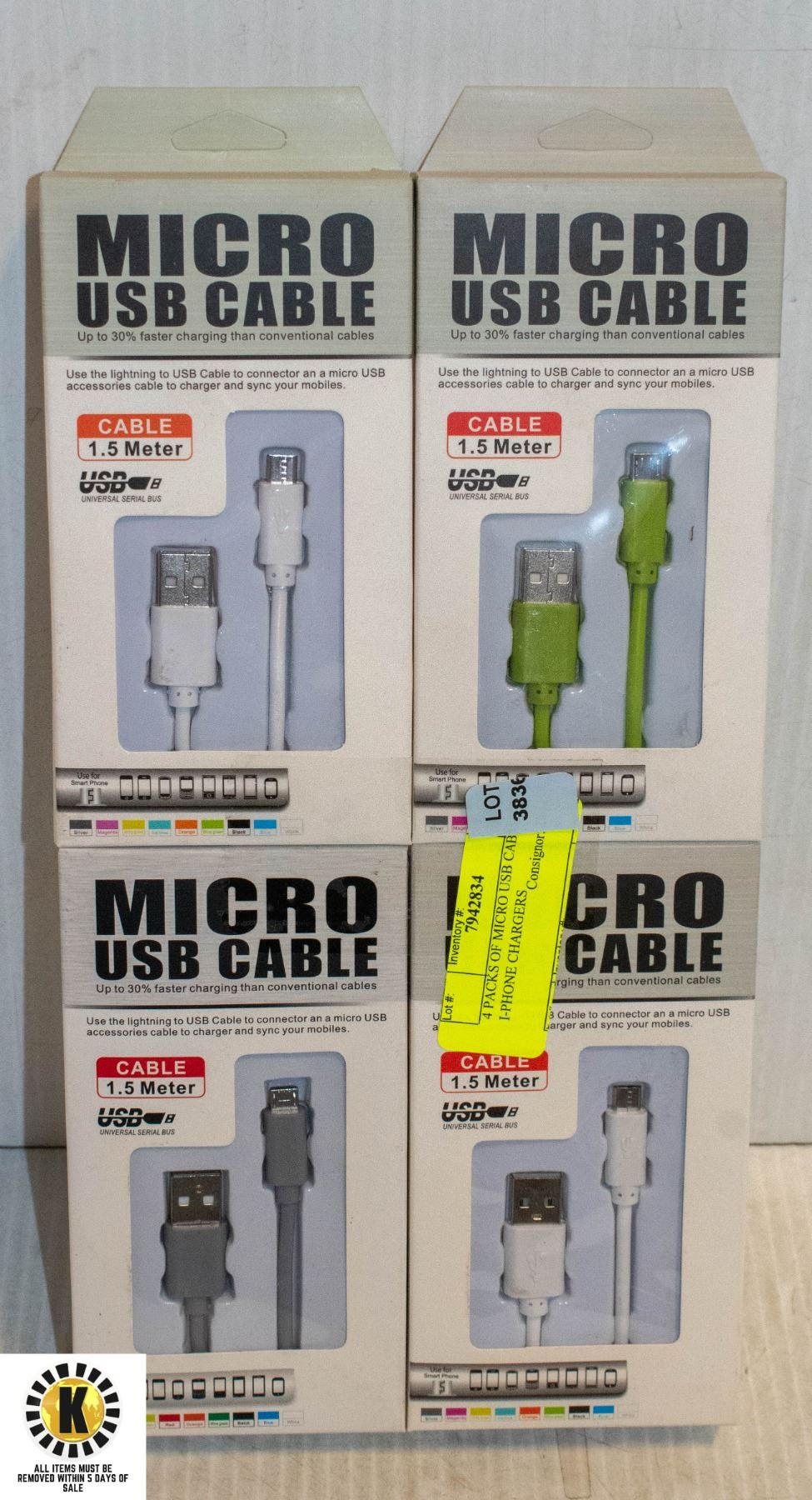 4 PACKS OF MICRO USB CABLE I-PHONE CHARGERS