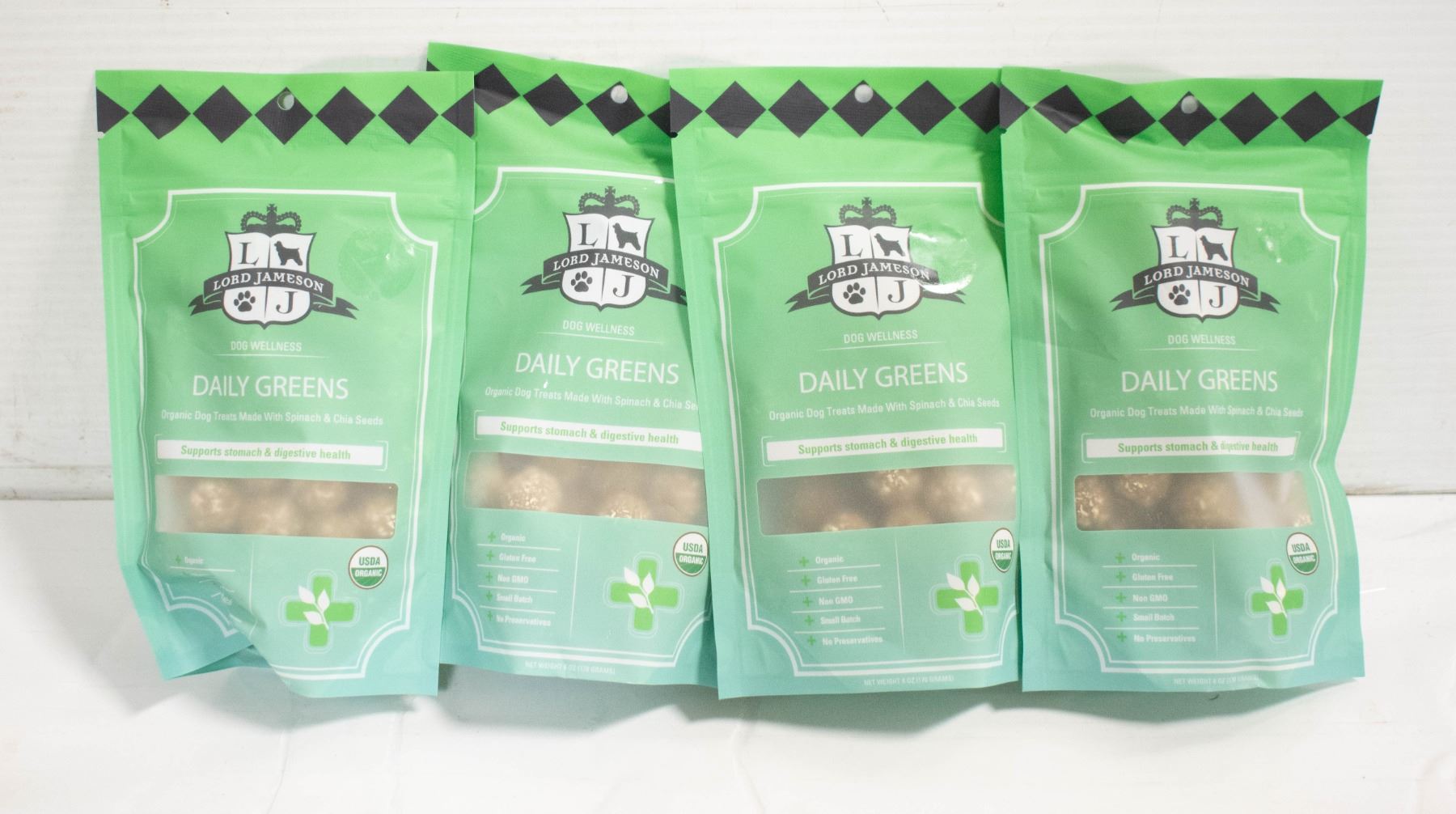 4 PACKS OF ORGANIC DOG TREATS DAILY GREENS