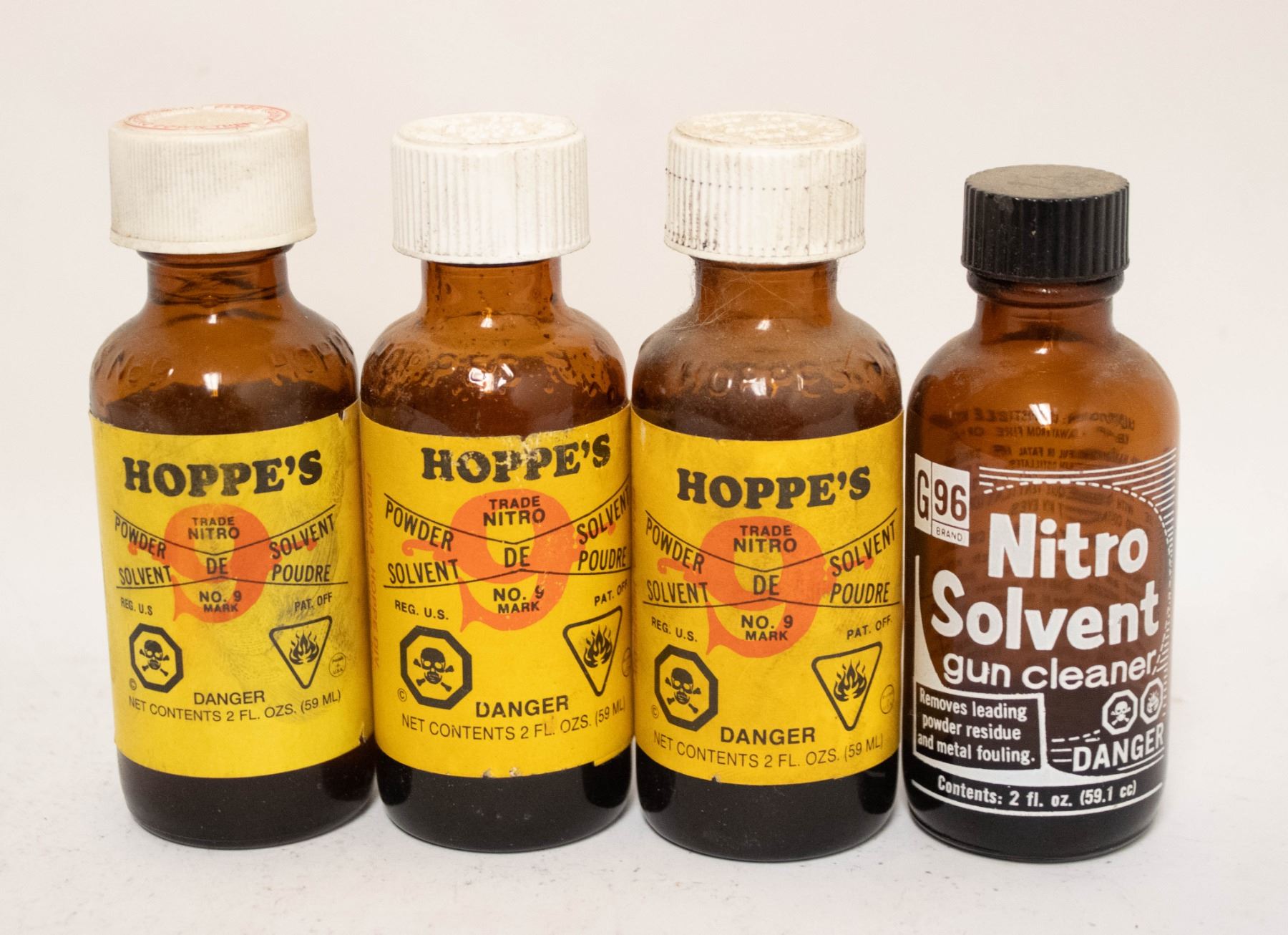 4 PARTIAL BOTTLES OF NITRO POWDER SOLVENT