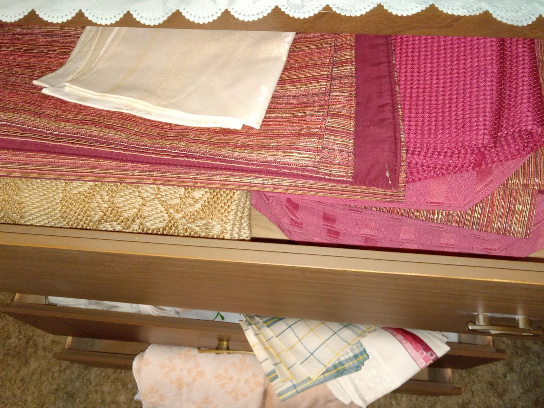 4-PC BDRM SET, DBL BED W/ HEADBOARD & BEDDING; TRIPLE DRESSER, 4-DRAWER CHEST w/CONTENTS & DESK.