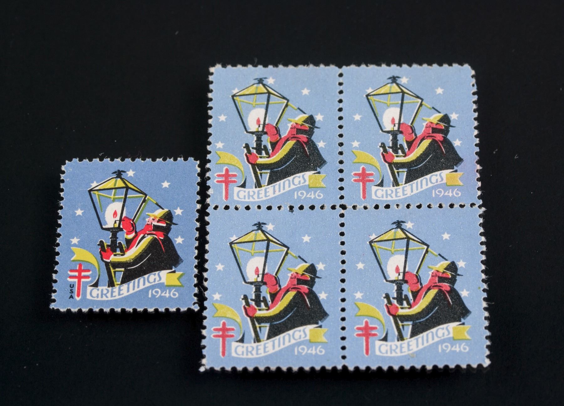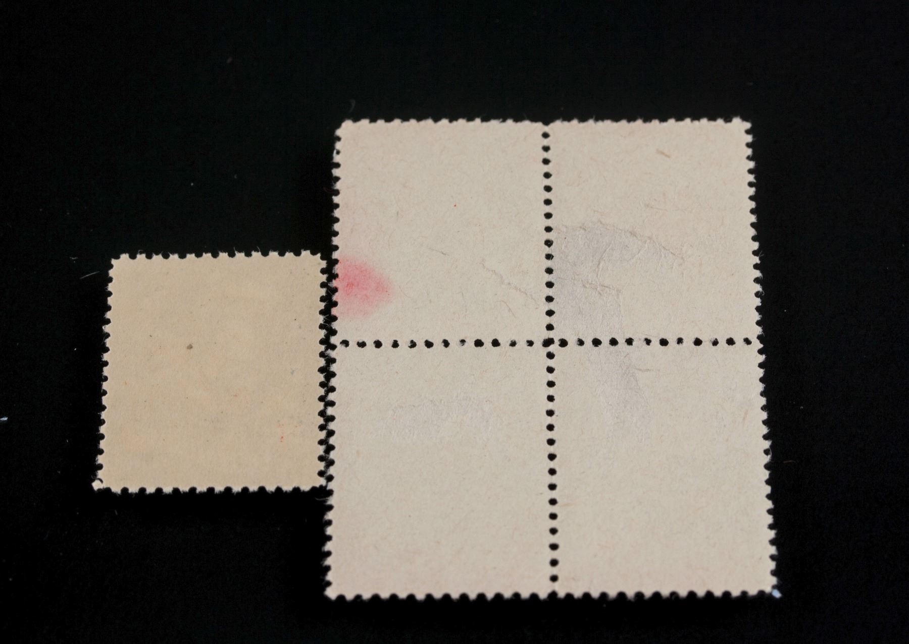 4 pieces of 1946 United States greetings stamp with errors; missing the letters "USA" on left and the colour on face; with 1 piece regular one; all unused; 2.5 cm x 2 cm