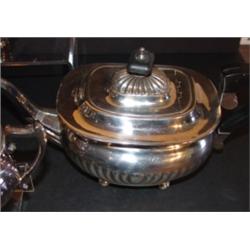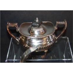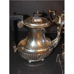 4 piece Towle silverplate coffee service consisting of teapot, coffee pot, sugar, & creamer. Marked on bottom Towle Silverplate 6011. Coffee pot: 9" H, teapot: 6.5" H