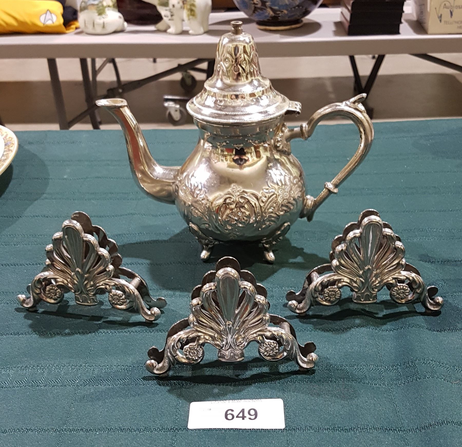 COFFEPOT & 3 INDIVIDUAL NAPKIN HOLDERS