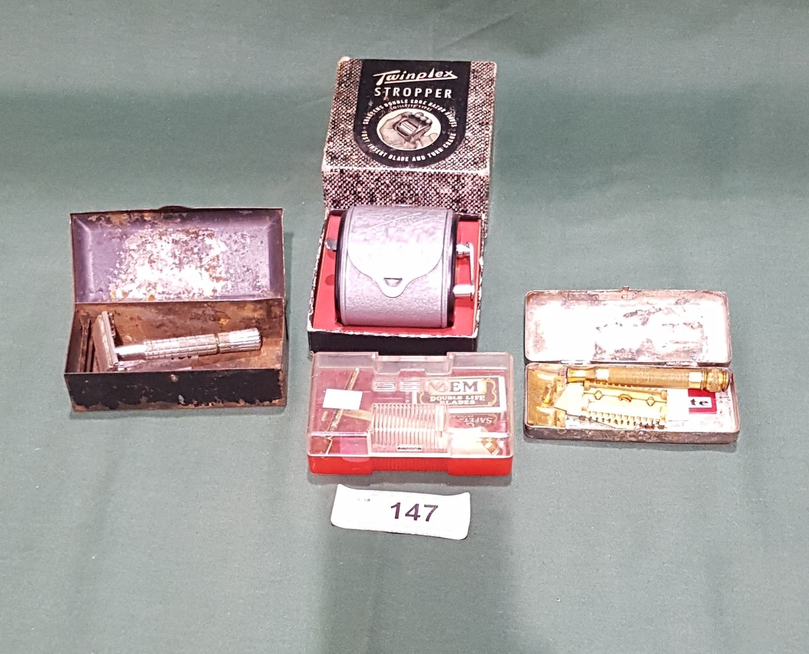 4 PCS VINTAGE RAZORS & STROPPER IN CASES