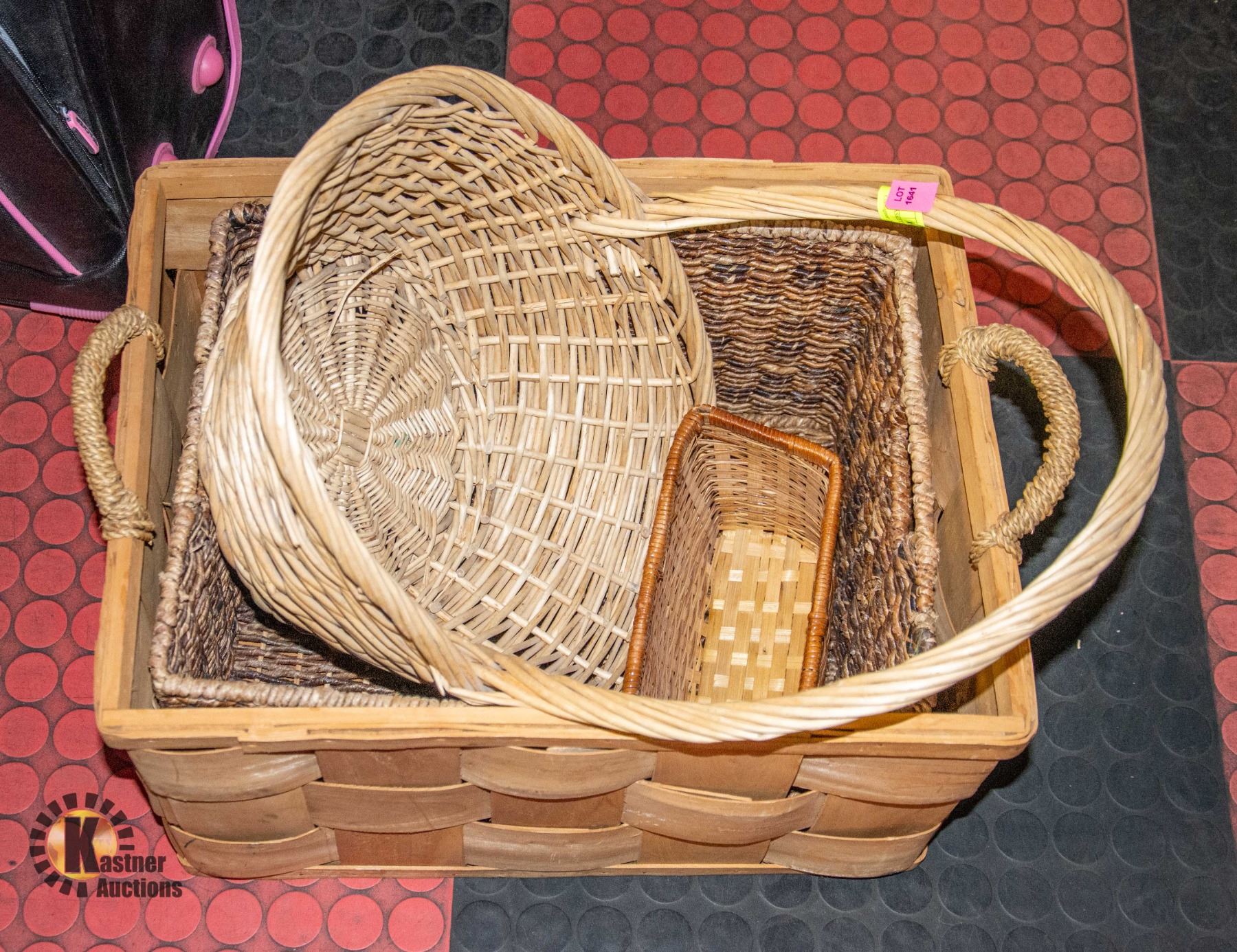 4 PCS WOVEN WICKER BASKETS W/HANDLES