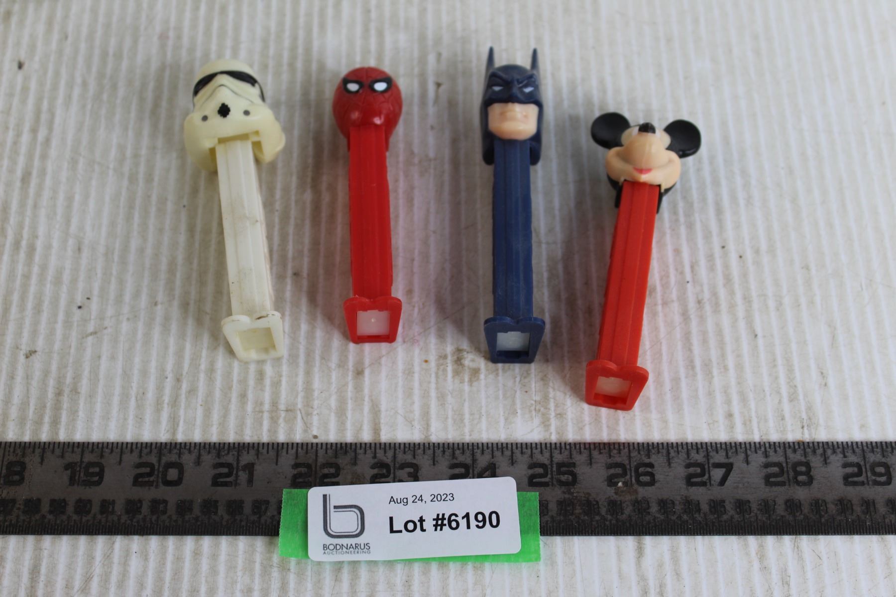 (4) PEZ Dispensers (Batman, Spiderman, Star Wars, Mickey Mouse)