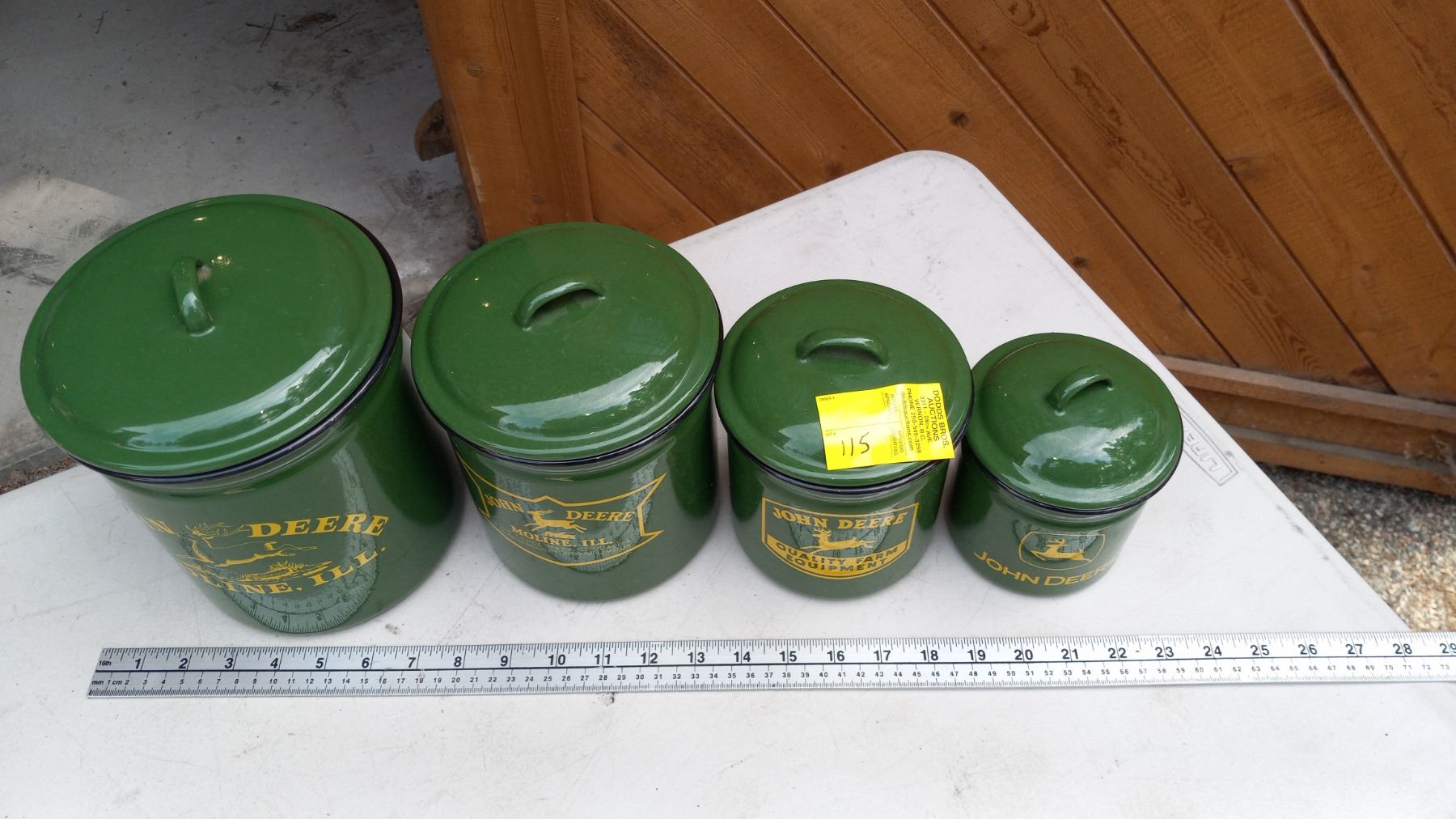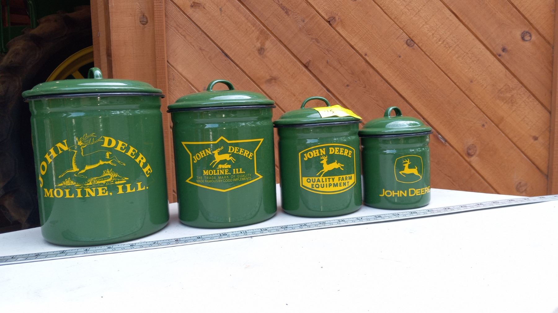 4 PIECE JOHN DEERE CANNISTER ENAMEL METAL SET