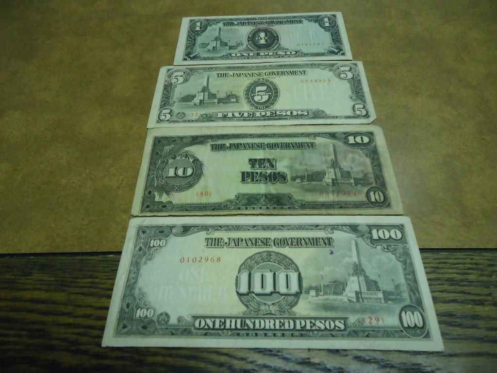 1,5,10 & 100 PESOS, THESE ARE WWII ERA