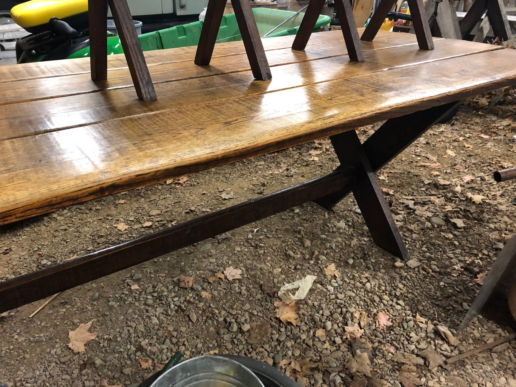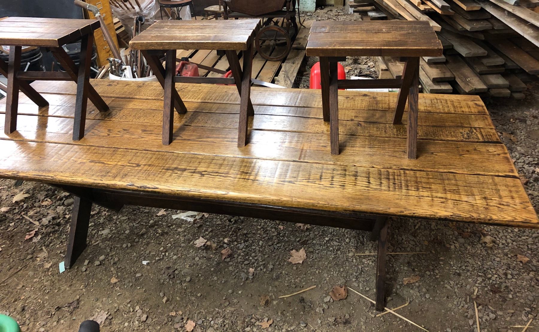 4 PLANK TRESTLE WOOD TABLE WITH 5 STOOLS