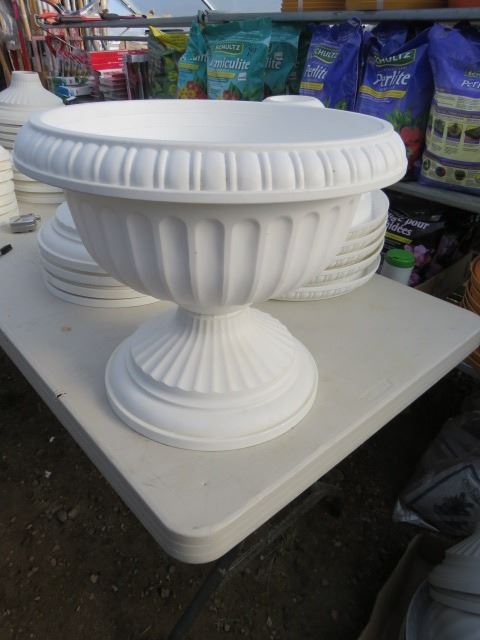 4 PLANTER URNS W/BASES 15" (4 TIMES BID PRICE)