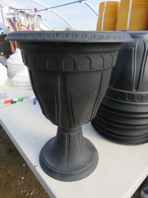 4 PLANTER URNS W/BASES 15" (4 TIMES BID PRICE)