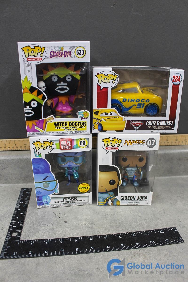(4) POP! In Box Vinyl Figures- Yesss, GIdeon Jura, Witch Doctor and Cruz Ramirez