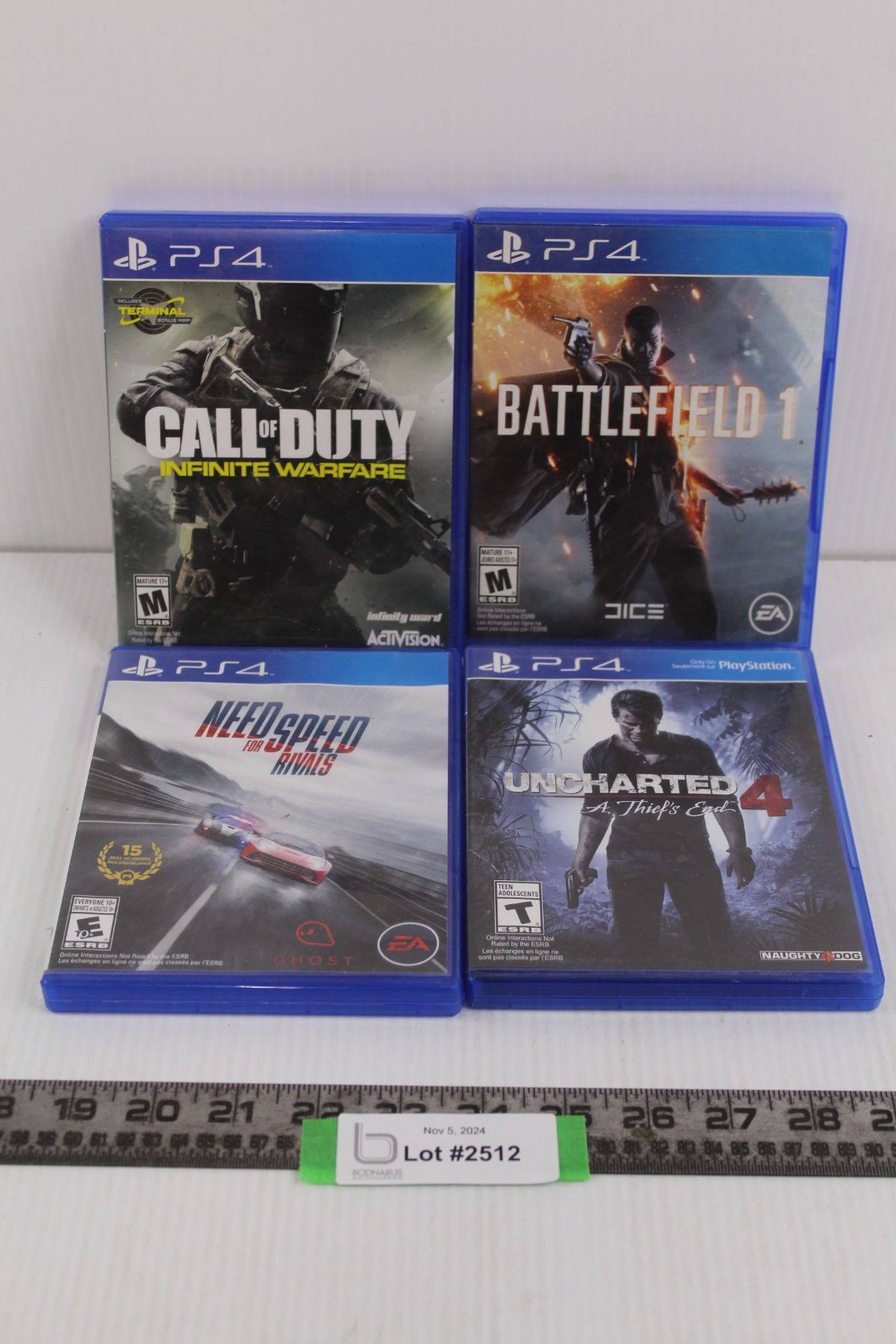 (4) PS4 Games: Battlefield 1, Call of Duty Infinite Warfare, Need for Speed Rivals, & Uncharted 4 - As Is