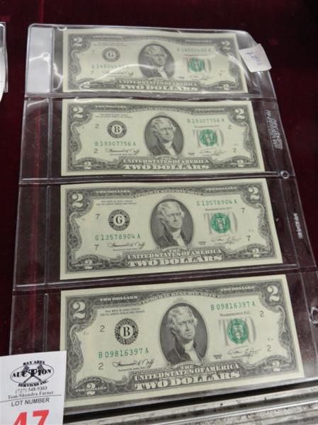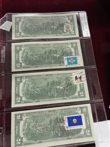 4 Pack $2 Bill - Cancelled Stamps on Back