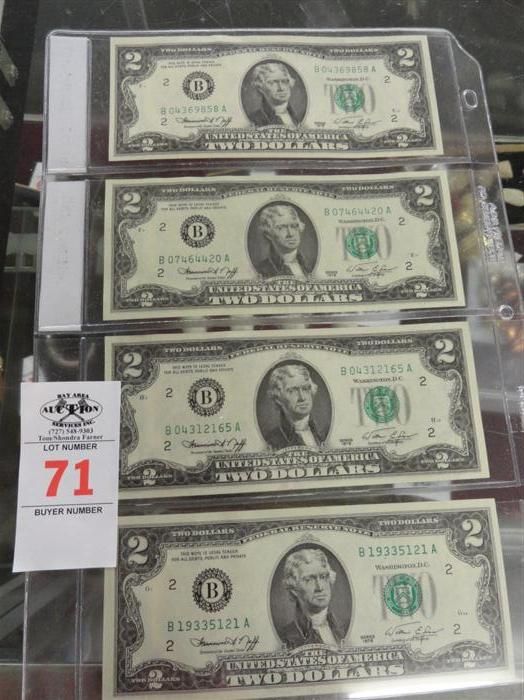 4-Pack of $2 Notes - Cancelled Stamp on Backs