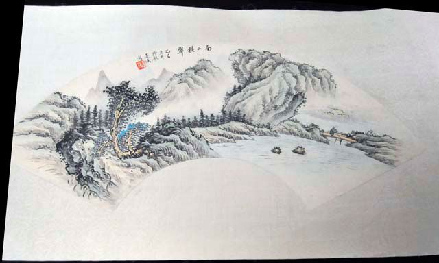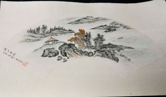 Paintings depicting lake scenes. Approx. 21" L X 7.25" W each. Please read our terms of sale.
