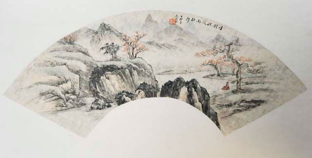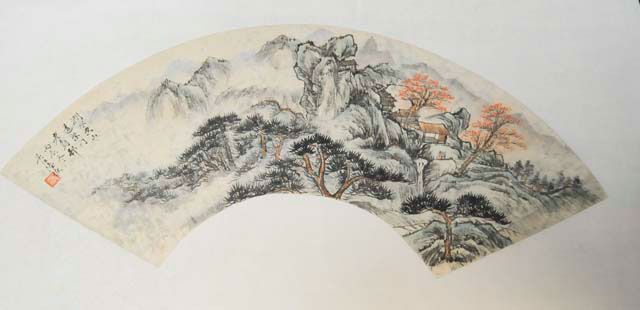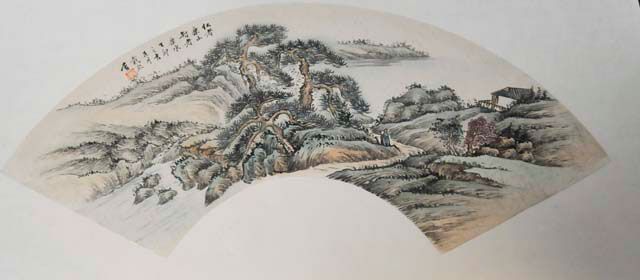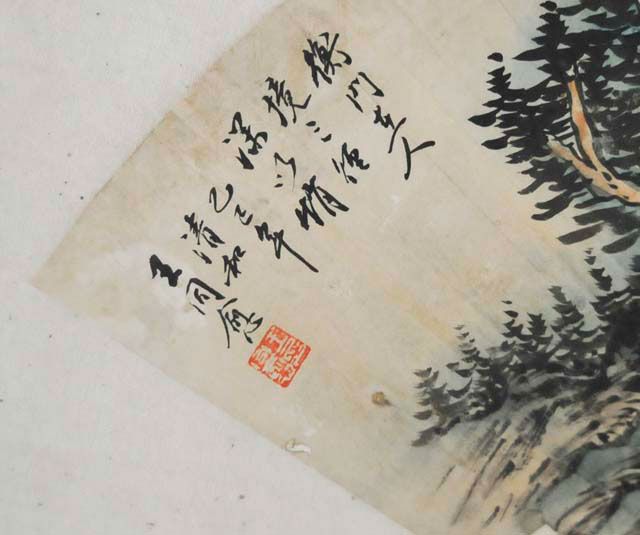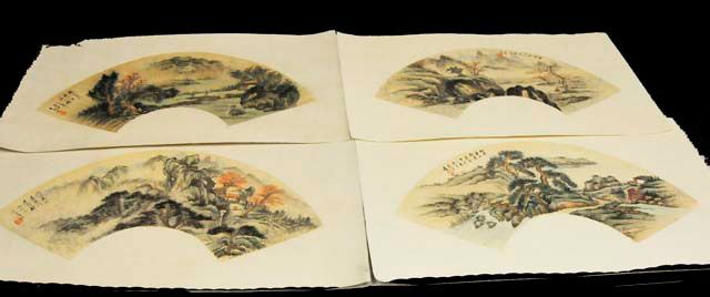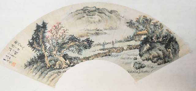 Paintings depicting mountain landscape with people and houses. Approx. 21" L X 7.5" W each. Please read our terms of sale.