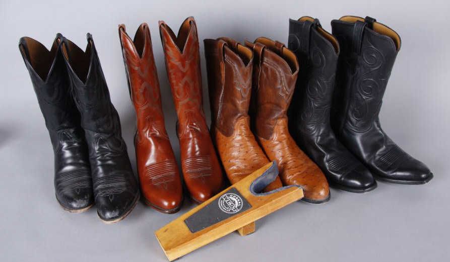 4 Pair of Lucchese Boots & 1 Boot Jack1 pair 10D, 3 pair 10 1/2D