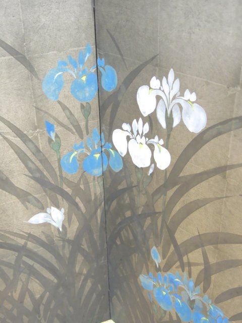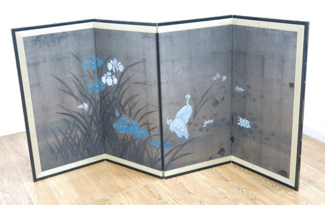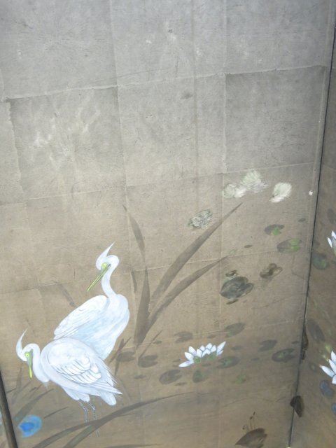 Depicting bird & flowers. Each panel approx. 36" H x 18 1/2" W.