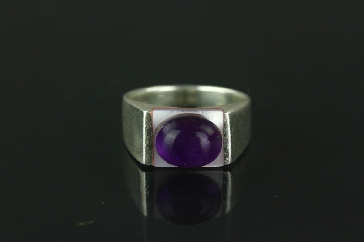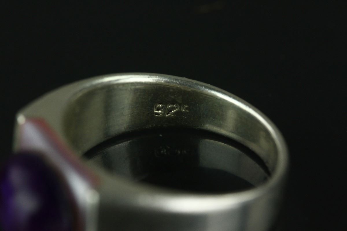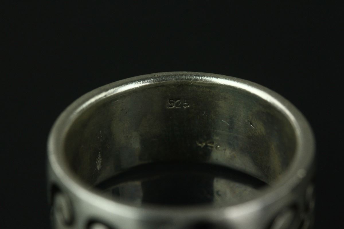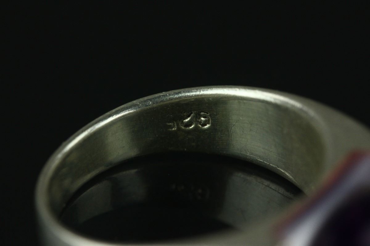 Four pieces of Chinese silver rings; inlaid with various coloured gemstones; with 925 mark on the interior; Ring Size: 8, 6 and 6.5, 23 grams total