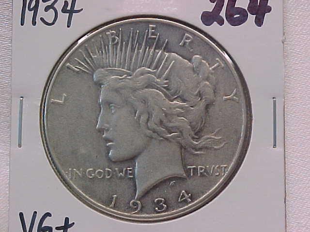 4 Peace $: 1922D F+, 1923 VF, 1926D VG, 1934 VG+