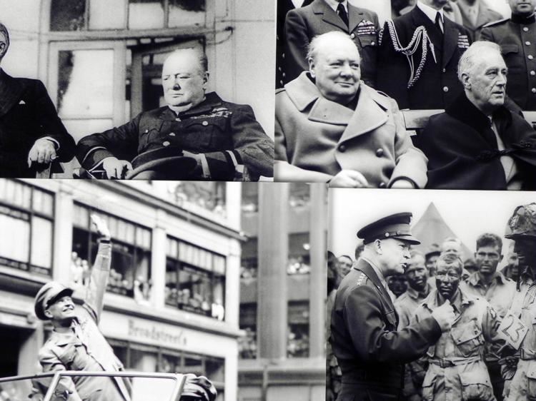 Here are 4 photographs that are representing great military leaders of WWII These are 8 x 10 black & white glossy high quality archive reprints. All are in excellent condition. They feature: Franklin Roosevelt, Churchill, & StalinGeneral Dwight Eisenhower with Troops WWIIGeneral Dwight D. Eisenhower in WWII ParadeStalin, Franklin Roosevelt, & Churchill