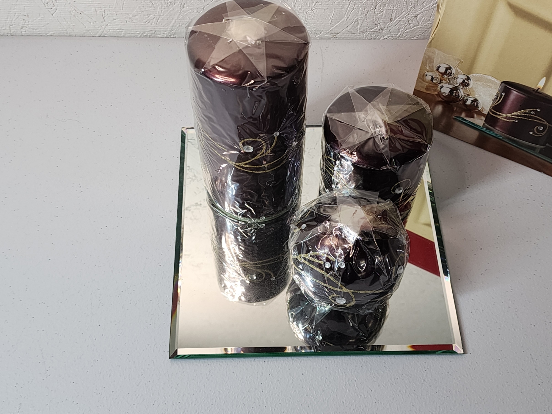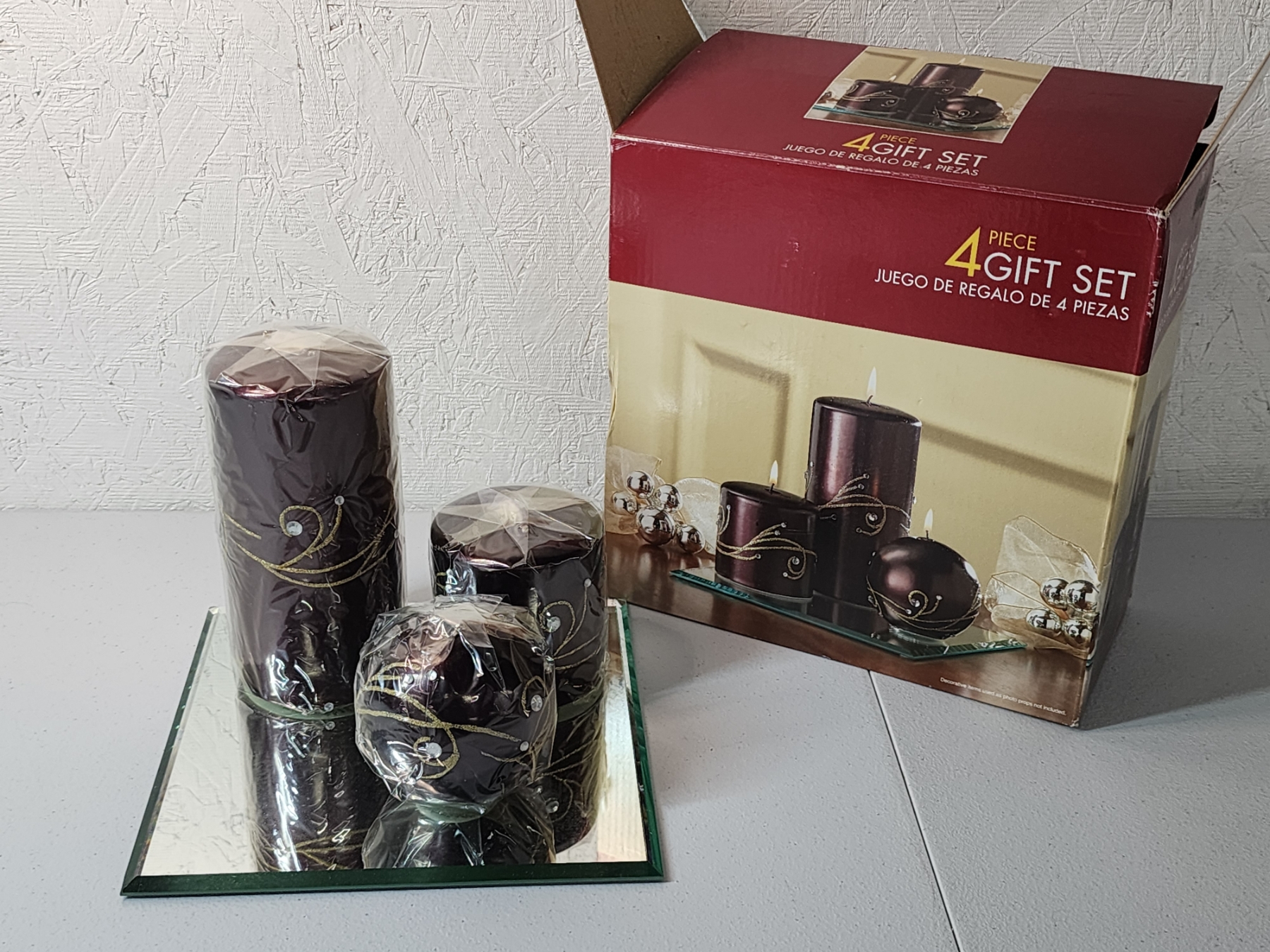 4-Piece Candle Gift Set with Mirrored Tray - Brand New