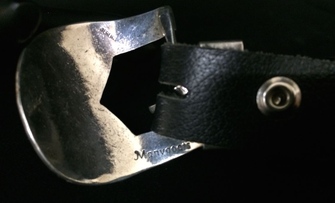 This belt buckle set is signed Manygoats (Navajo) and stamped sterling. It will fit a belt up to .75” wide and weighs 37g. Good condition. Shipping: There will be a $5 handling / packaging fee for shipping this lot. The actual cost of postage will be added on top of that.