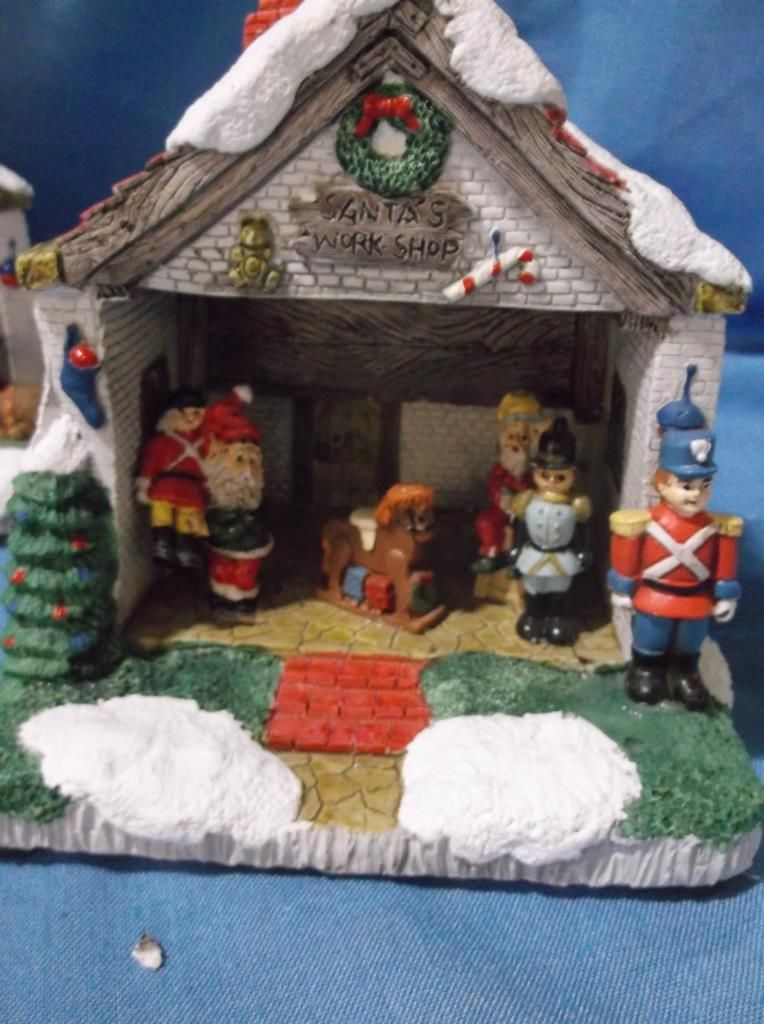 all battery operated.........1- Santa's House, 2- Santa's work shop, 1- Santa's Stable all in box....