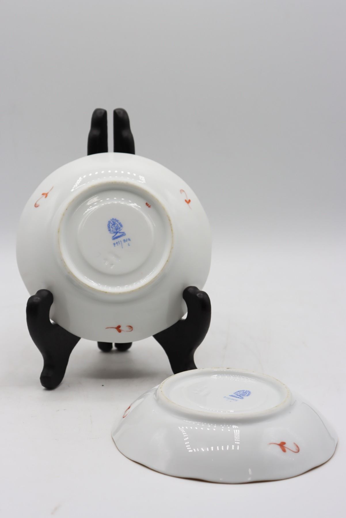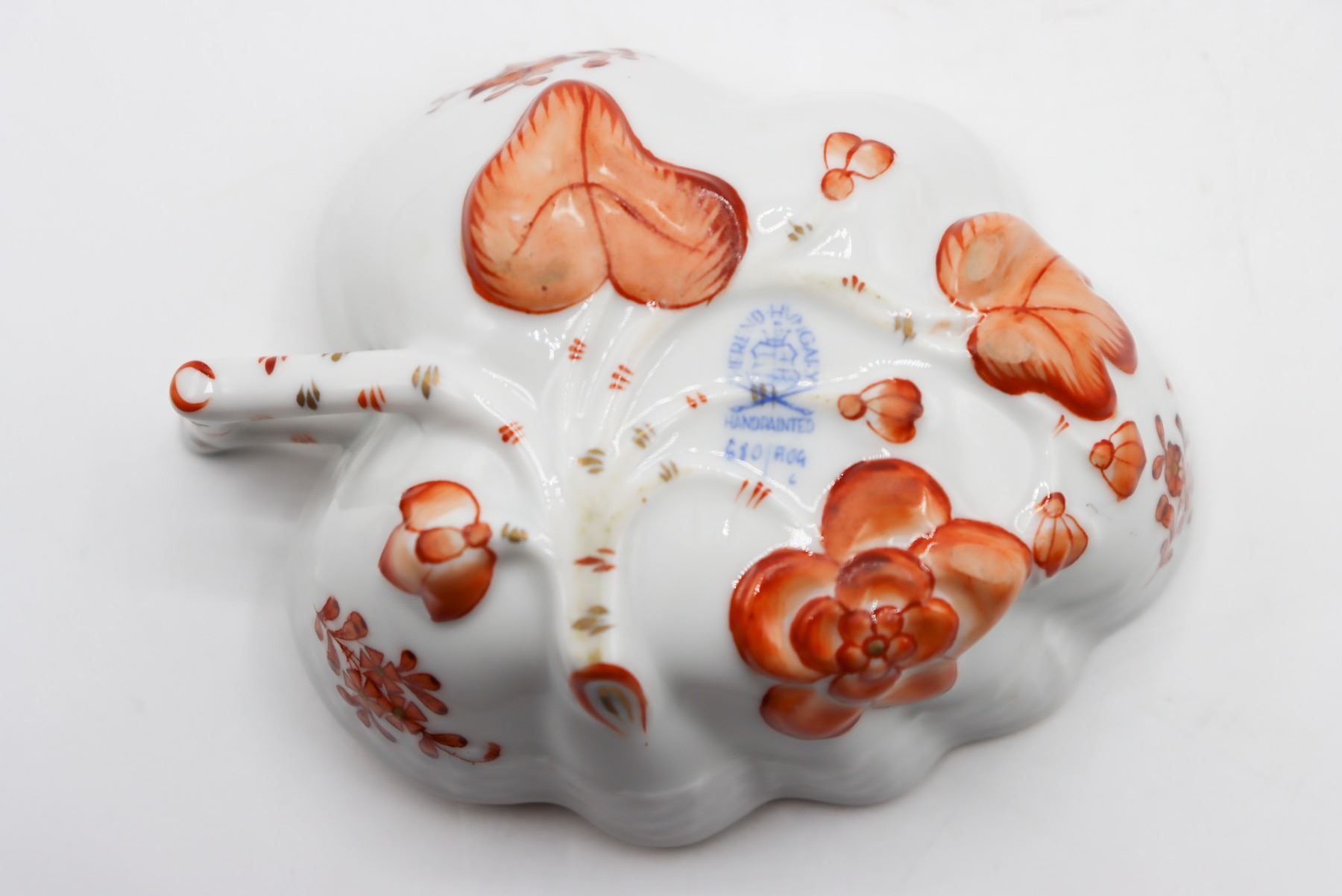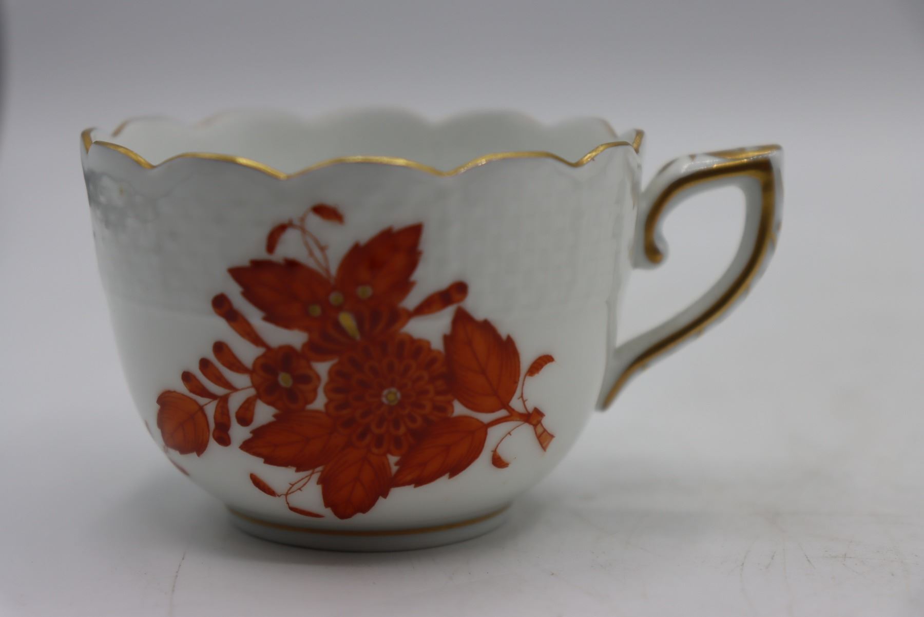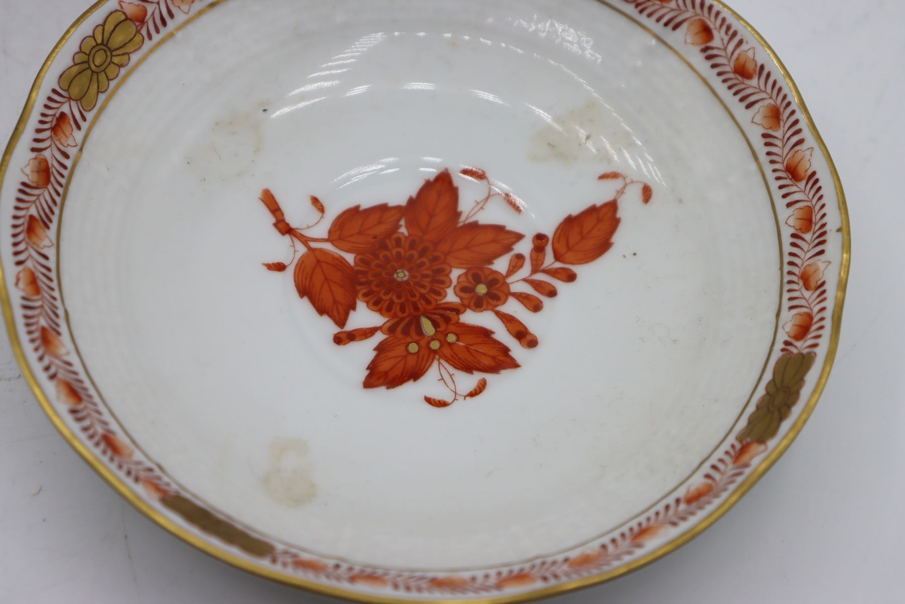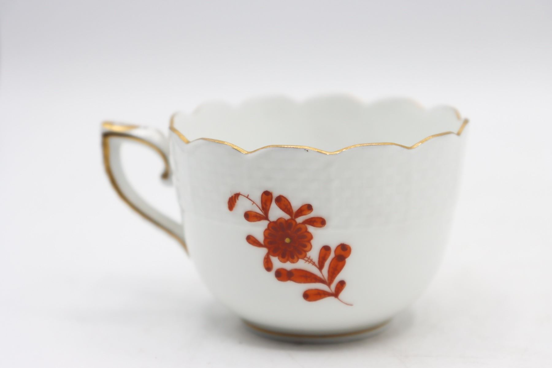 Herend Hungary porcelain set of four pieces. Cream porcelain with Apponyi red and gilt rims. Marked on the underside.