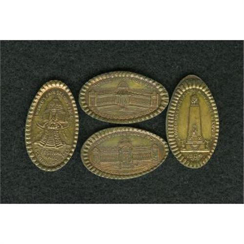 <B>4-Piece St. Louis World's Fair Elongated Lot.</B></I> Martin/Dow catalog numbers <B>SLWF-9a, SLWF-19, SLWF-19, and SLWF-22 </B></I>on Indian cents circa 1904.<BR><BR><b>Shipping:</b> Coins & Currency (<a target="_blank" href="http://www.heritageauctions.com/common/shipping.php">view shipping information</a>)