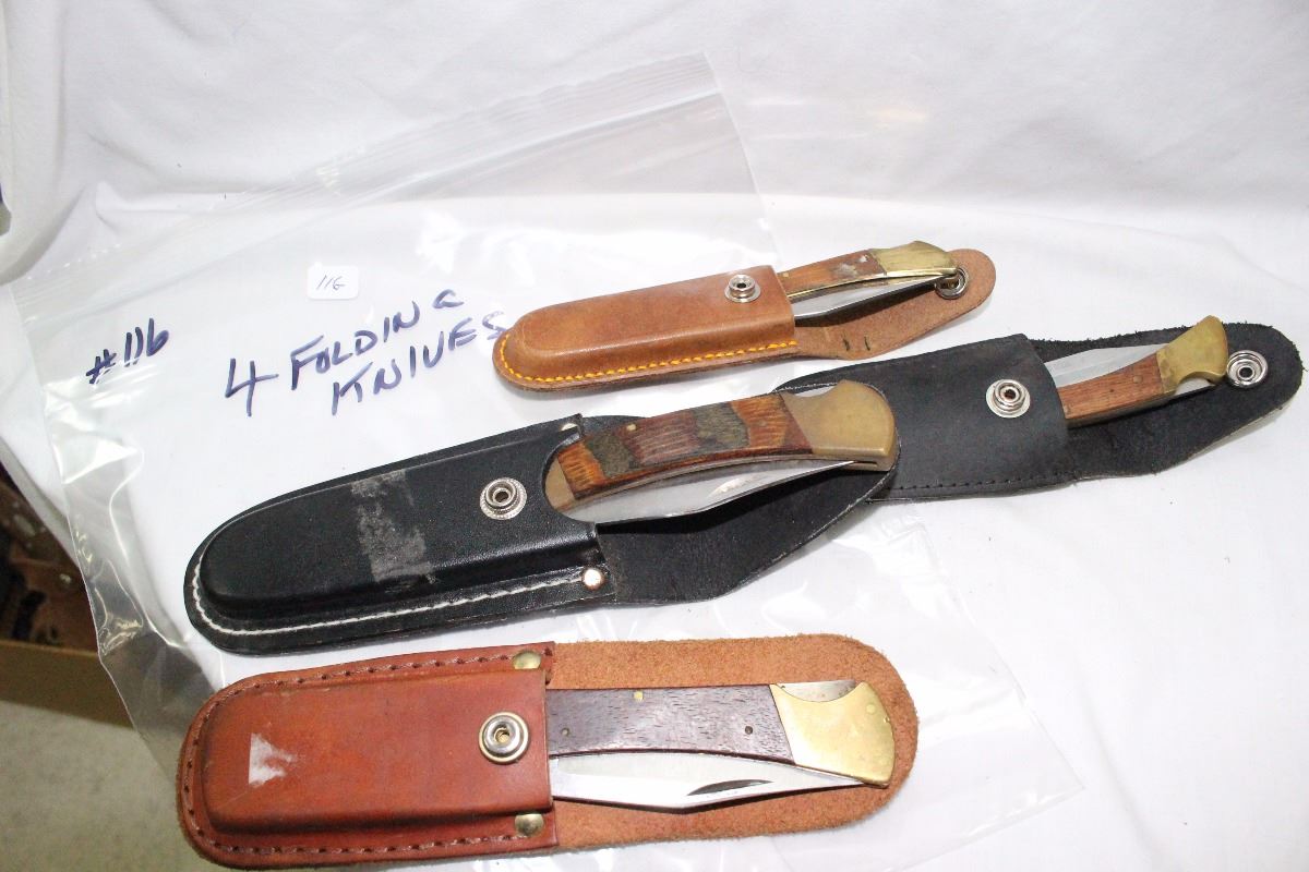 4 Piece Various Sized Lock Blades with Leather Sheath