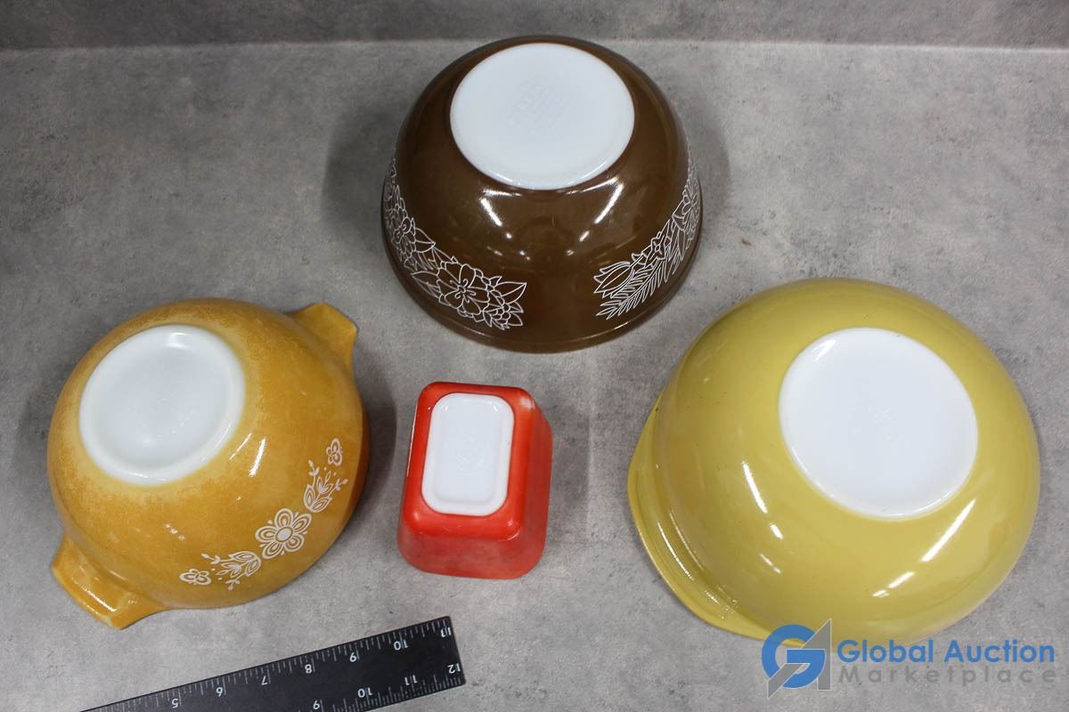 (1)- Bowl -Yellow (Bright) - 1956 - 1962; (1) Butterfly Gold - 1972-1978; (1) Woodland - 1978-1983