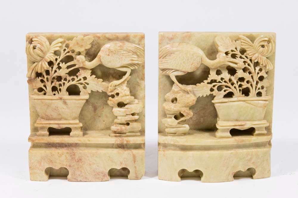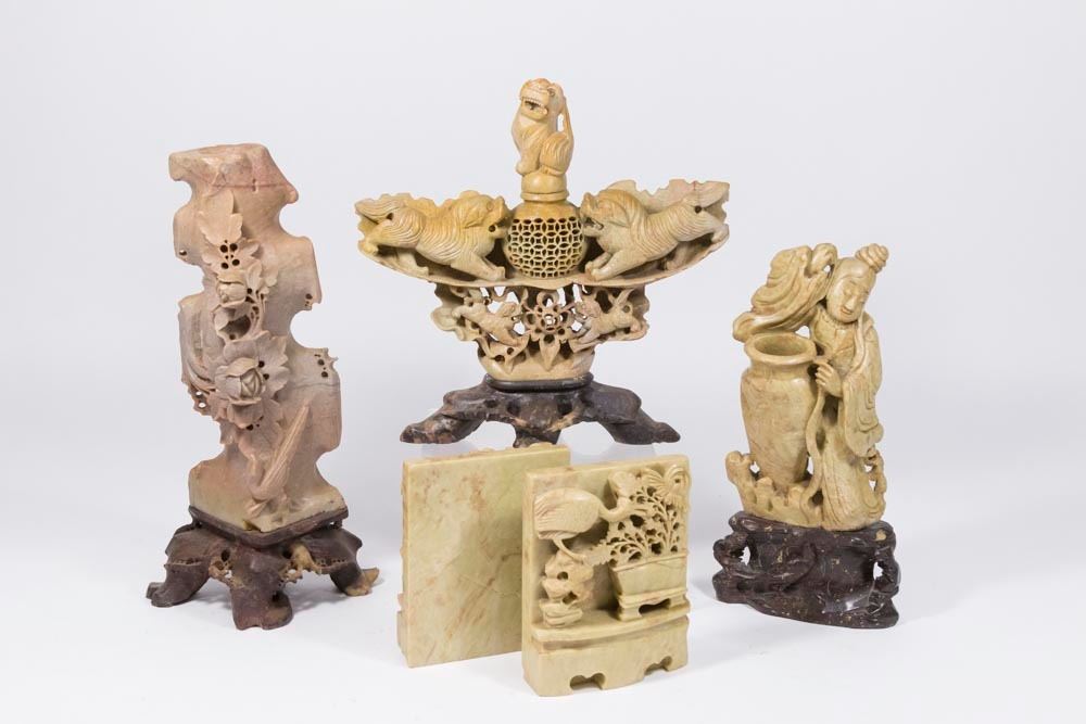 Including bookends, vase, figural censer, and figural sculpture.