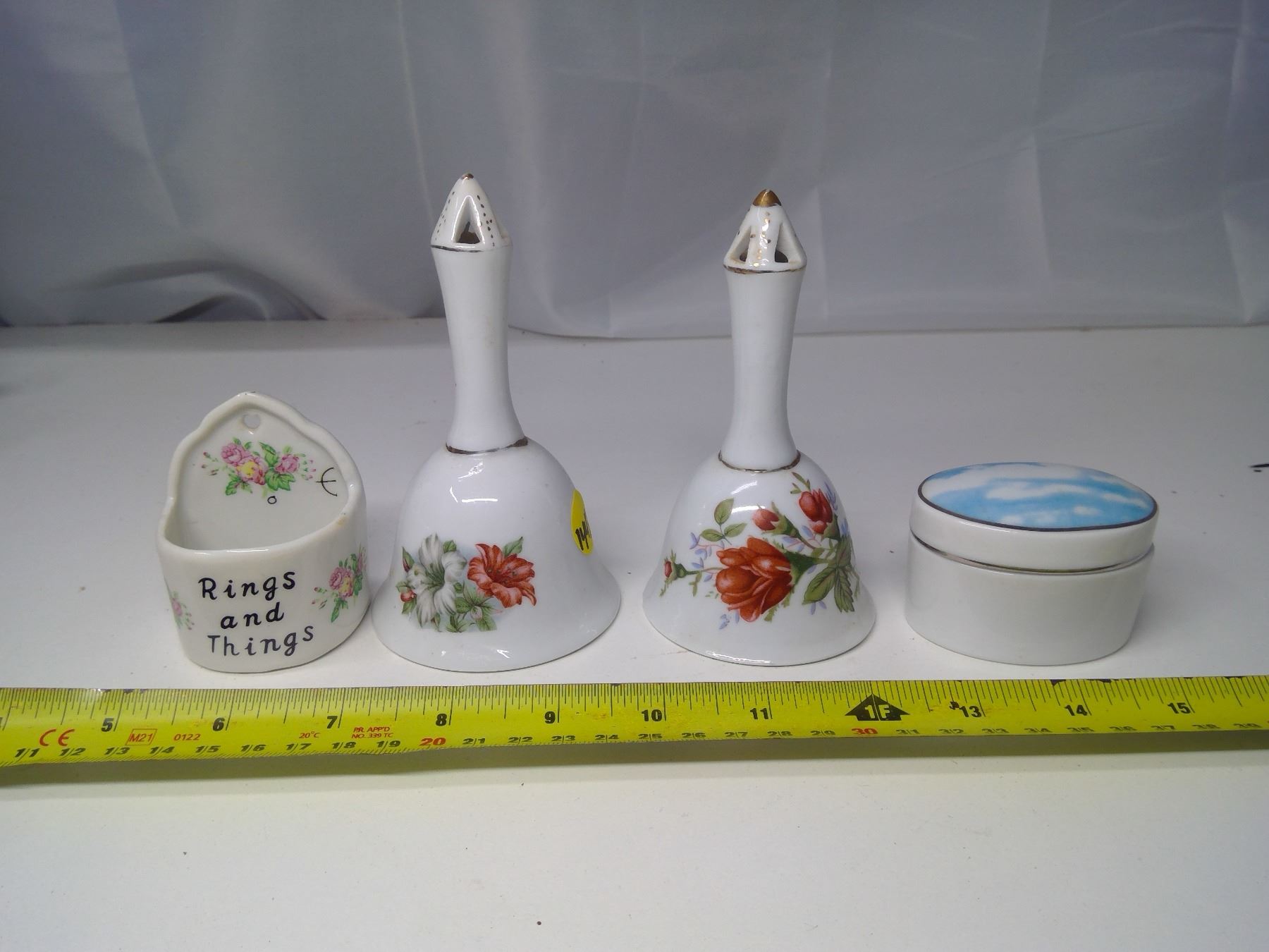 4 Pieces Ceramic/China - 2 Bells and 2 Containers