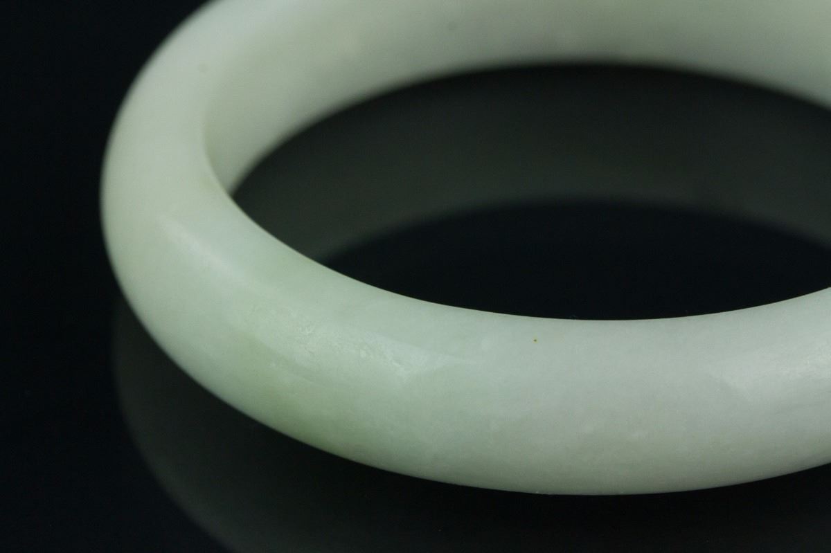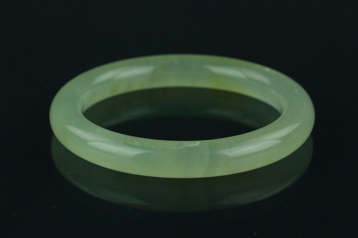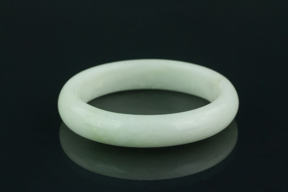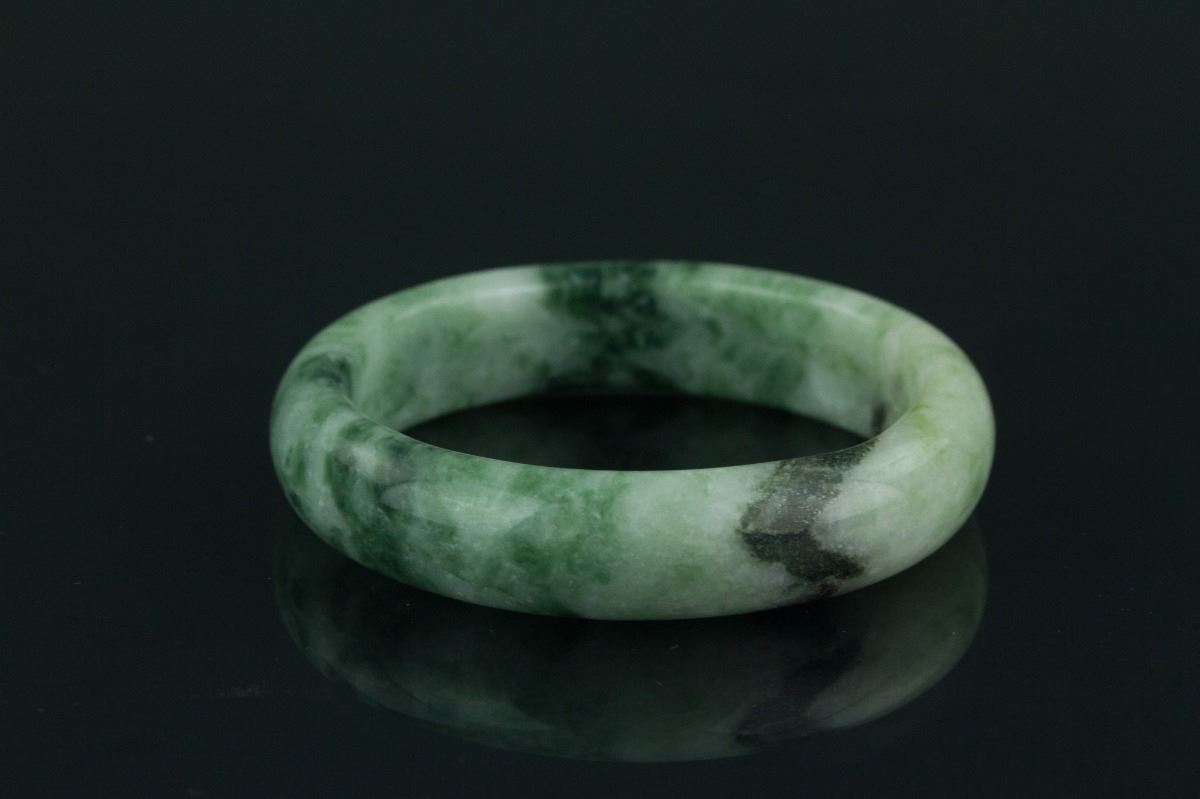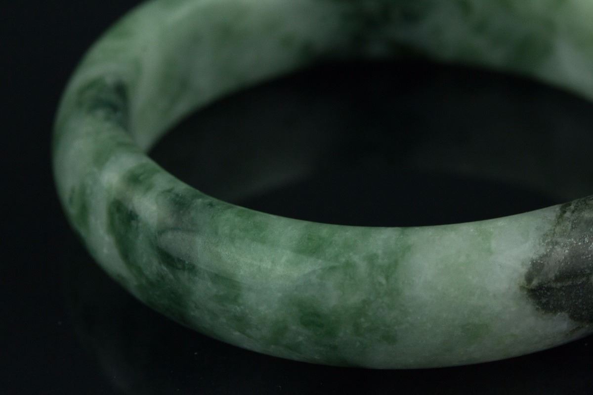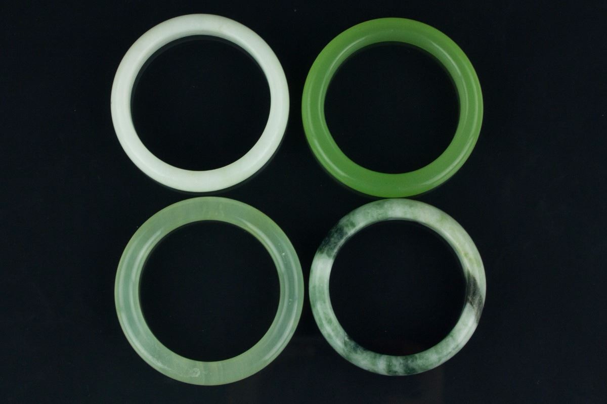 Four pieces of hardstone bangles; rounded outside and flatten inside; the stone of various green tone; Inner D: 5.5-6 cm, 207 grams total