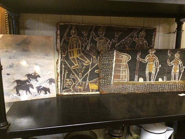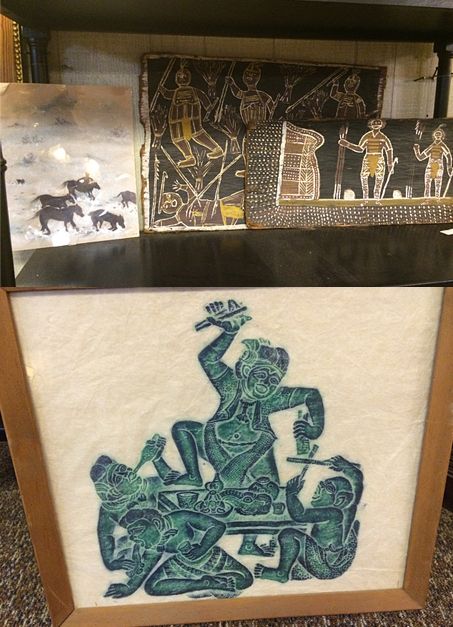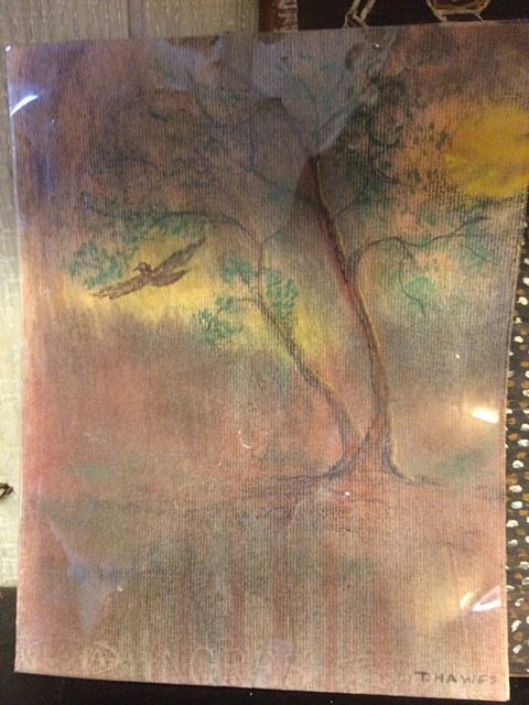 4 pieces of artwork includes 2 antique bark paintings, one looks to be pastel (2 sided signed T. Hawes), and a tribal rubbing in frame. These items may be picked up in Torrington, CT. Appointment time will be scheduled after auction date.
