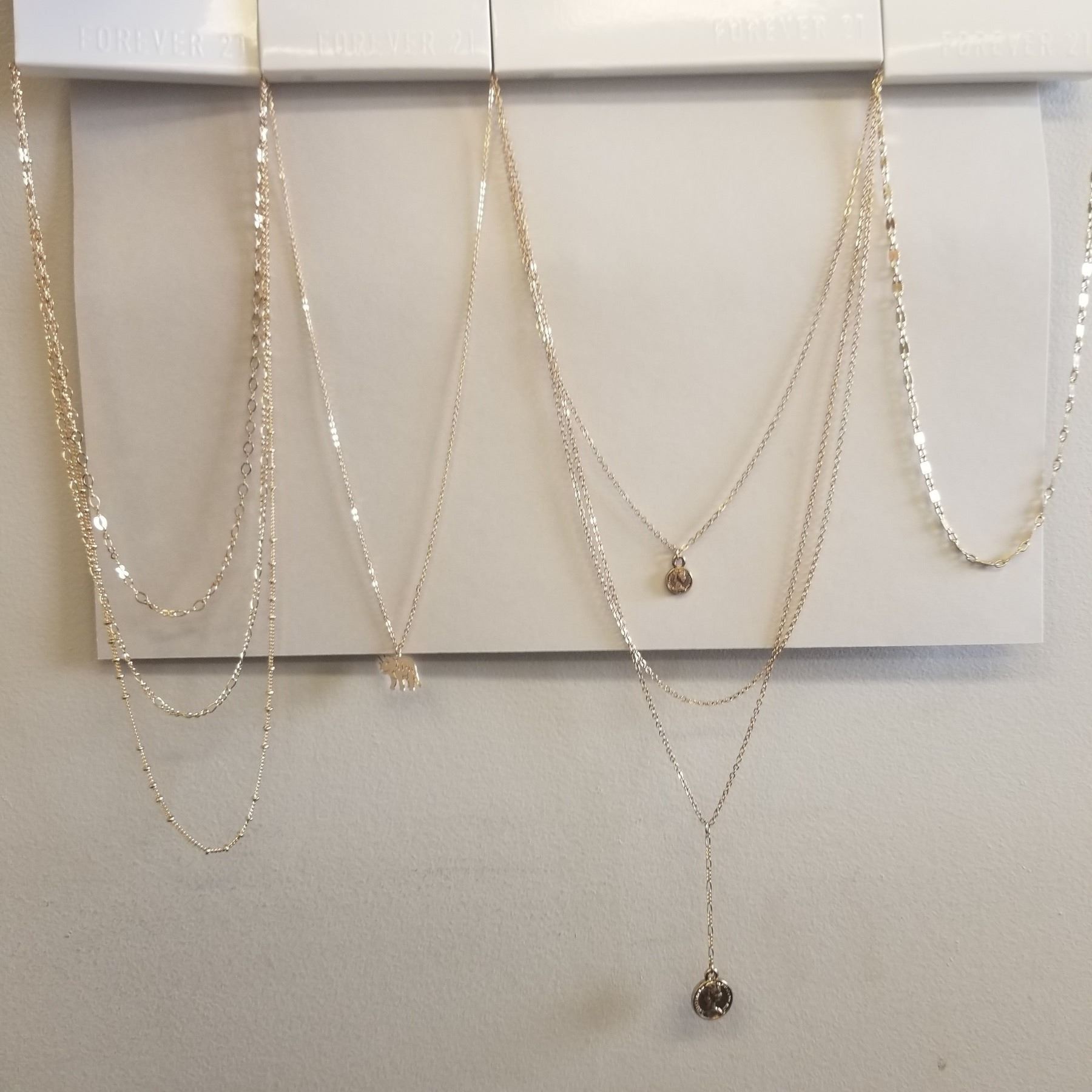 4 Pieces of Forever 21 Fashion Jewelry. Four Chains Two with Pendents
