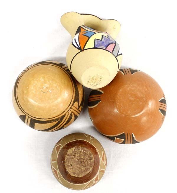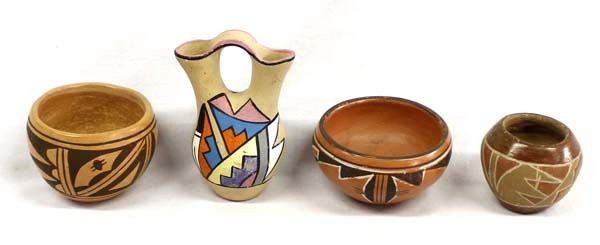 4 Pieces of Historic Native American Pottery, includes Hopi, San Juan, and Tesuque, largest measures 4.5''H