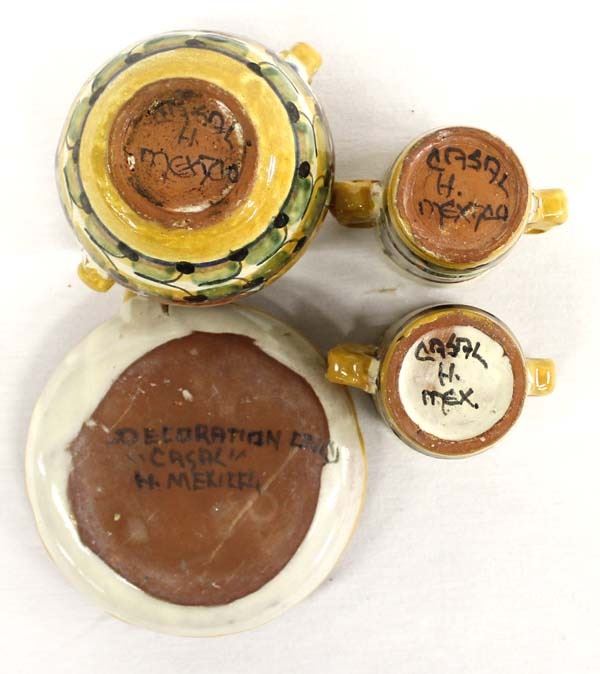 4 Pieces of Mexican Casal Pottery, largest measures 4.5'' x 5'' and all are marked, beautiful colors