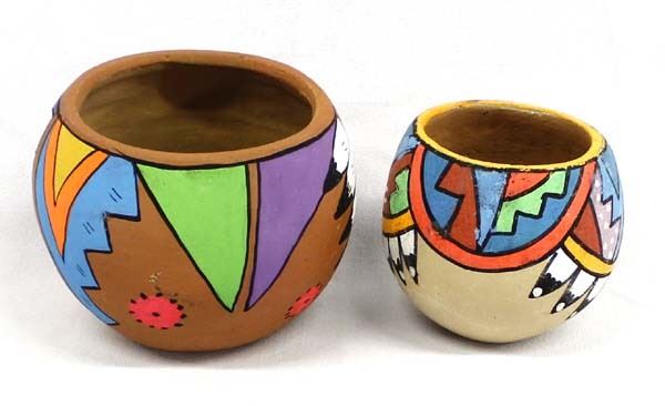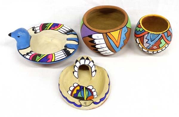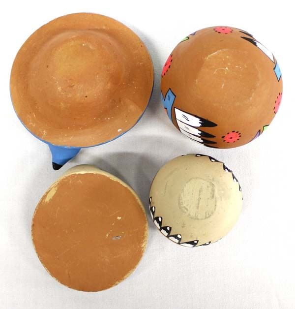 4 Pieces of Native American Jemez/Tesuque Poster Paint Pottery, largest measures 3.5'' x 4'', one jar has pressure cracks, ca. 1950s
