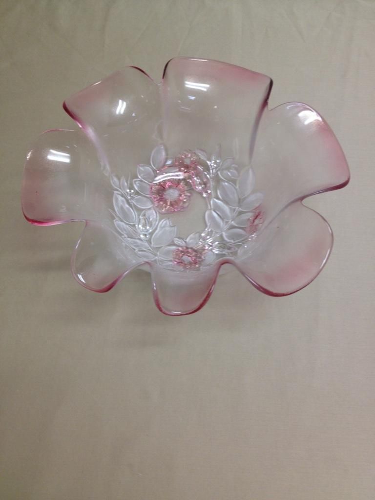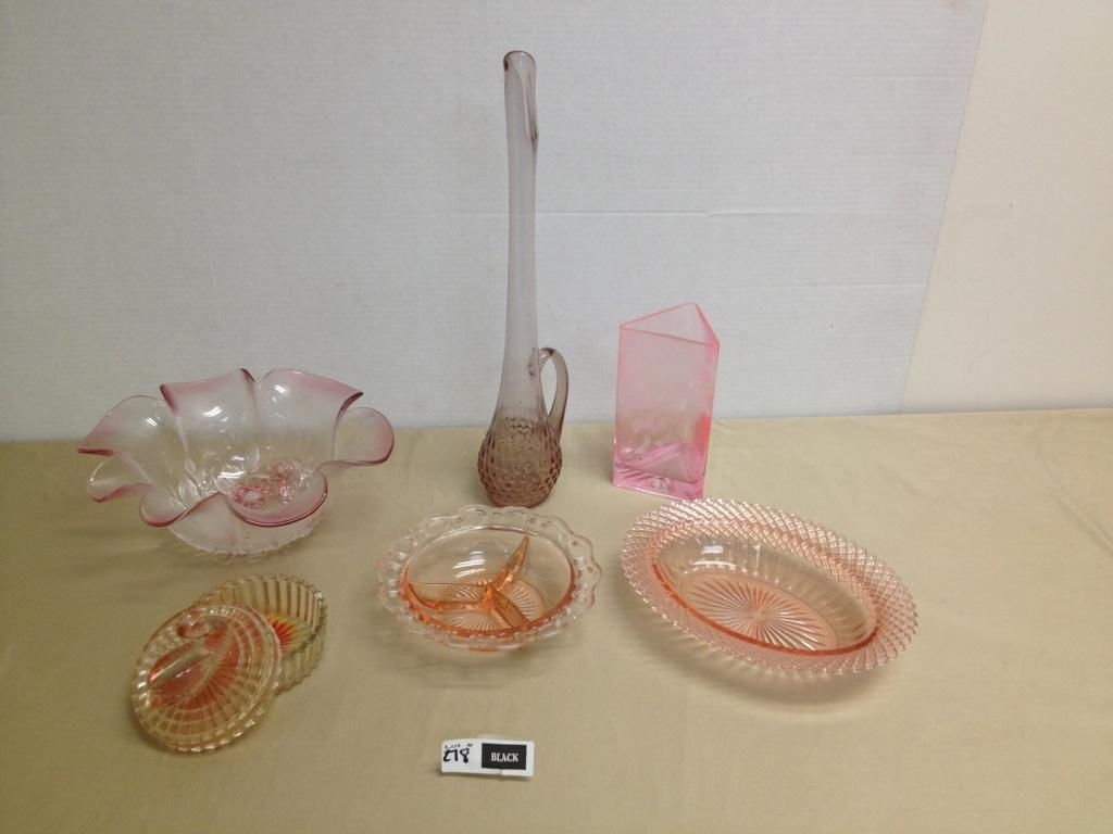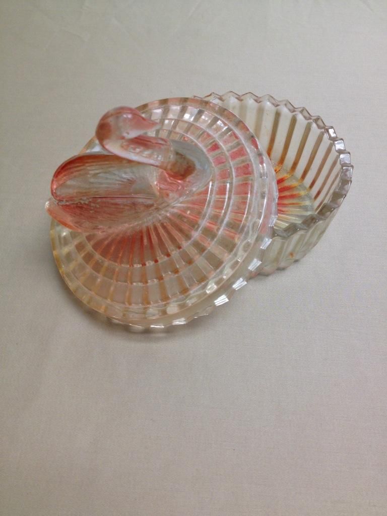 Tall slender Vase, Candy dish with Swan on top, Large pink and floral designed bowl, Oval shaped dish.